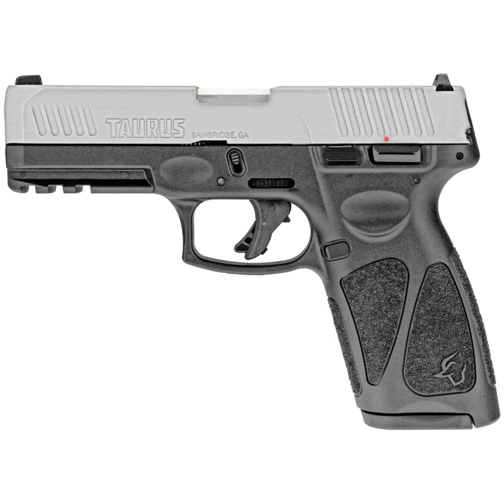 Taurus G3 9mm Luger Pistol 17 Rounds Black/Stainless. aurus Item Number: 1-G3B949 Semi-Automatic Pistol Single Action with Restrike Capability 9mm Luger 4" Stainless Steel Barrel (Matte Stainless Steel Finish) 17 Round Magazine Fixed Steel Front Sight Serrated Drift Adjustable Steel Rear Sight Picatinny Accessory Rail Loaded Chamber Indicator Manual Safety Striker Block Trigger Safety Full Size Frame Generous Stippling Patches on Grip Ergonomic Palm Swell Overall Length 7.28" Overall Height 5.20" Overall Width 1.20" Overall Weight 24.83 oz Stainless Steel Slide (Matte Stainless Finish) Polymer Frame (Black Finish)